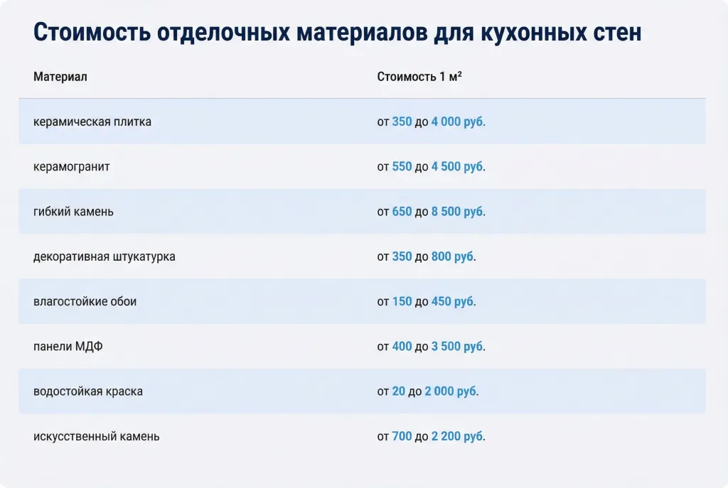 Чтобы понять, во сколько обойдется отделка стен на кухне, полезно смотреть не только на цену за квадратный метр покрытия, но и на сопутствующие расходы. Это включает подготовку поверхности, крепеж, расходные материалы и, если нужно, работу мастеров.