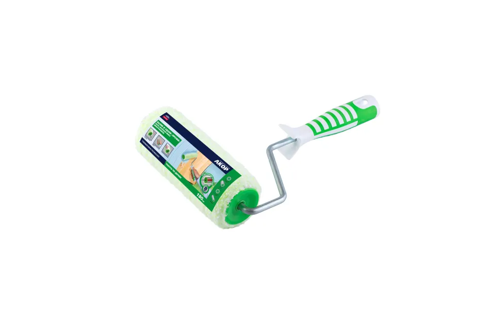 АКОР ПРОФИ валик в сборе для работ по дереву 2-х компонентная ручка микрофибра предназначен для качественного нанесения различных пропиток, антисептиков, лазурей, эмалей и водных красок на деревянные поверхности во время строительно-отделочных и ремонтных работ внутри и снаружи помещения.