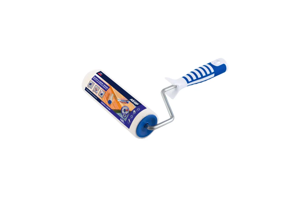Акор Профи валик для лаков с натуральной шерстью и 2-компонентной ручкой предназначен для нанесения различных типов лаков, включая пропитки, лазури, эмали и краски на водной основе, на различные поверхности.
