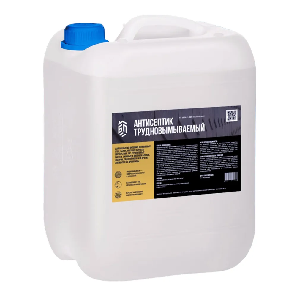 Антисептик трудновымываемый для долговременной защиты от биологического поражения (гниль, грибок, плесень, синева, насекомые-древоточцы и т.д.) деревянных, каменных, бетонных и кирпичных поверхностей снаружи (при перекрытии финишными ЛКМ) и внутри помещений.