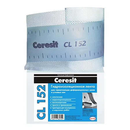 Церезит CL 152 - водонепроницаемая лента для герметизации швов, представляющая собой сетку из полиэстера с водонепроницаемым покрытием из термопластичного эластомера и предназначена для герметизации деформационных швов и угловых зон внутри и снаружи зданий при условии отсутствия негативного (т. е. со стороны основания) давления воды.