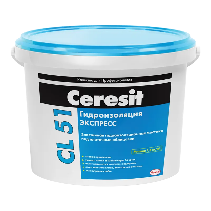 Полимерная гидроизоляционная мастика Церезит CL 51 предназначена для образования бесшовных эластичных водонепроницаемых покрытий на стенах и полах, при внутренних работах, в любом строительстве.