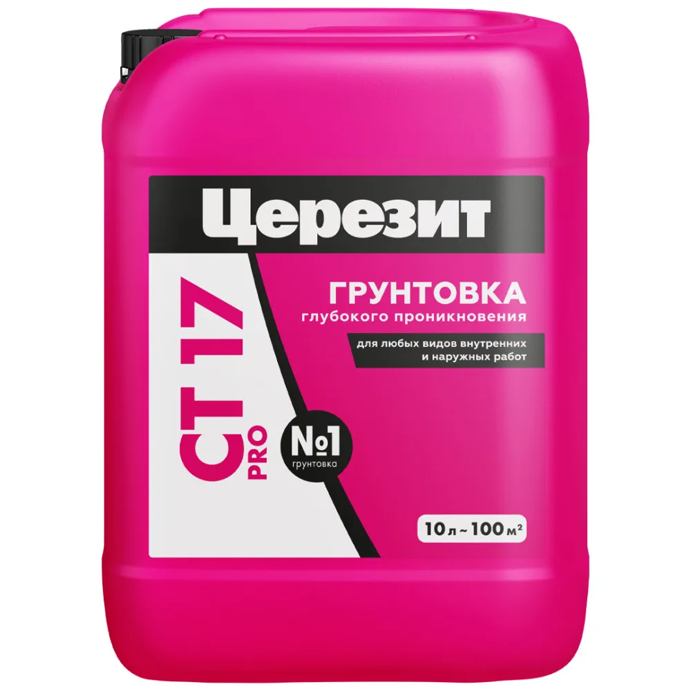 Грунтовка CT 17 PRO предназначена для обработки поверхностей перед нанесением штукатурных и напольных смесей, плиточных клеев и т.д.