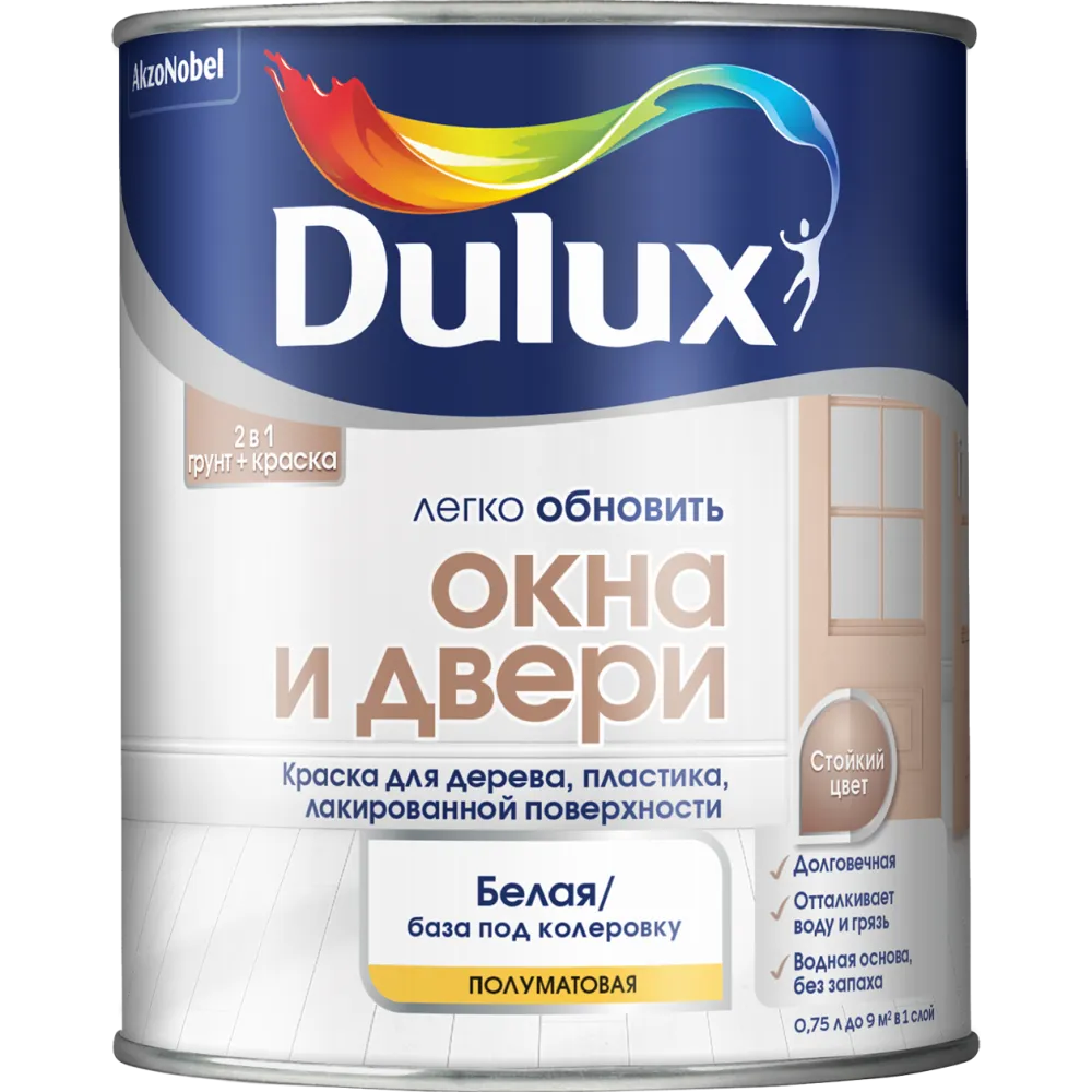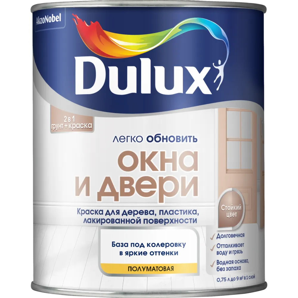 DULUX / ДЮЛАКС ЛЕГКО ОБНОВИТЬ ОКНА И ДВЕРИ краска грунт для дерева пластика полуматовая