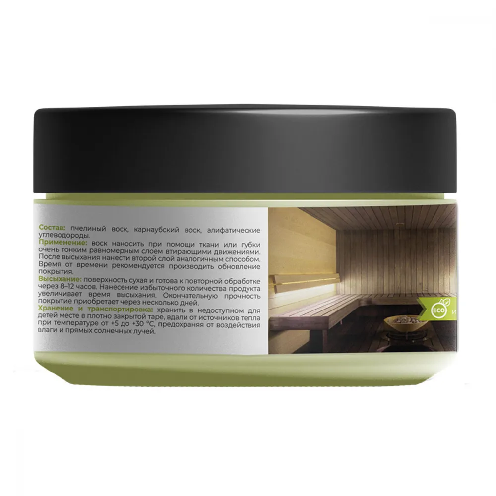Воск для бань и саун — смесь природных восков для обработки внутренних поверхностей саун и бань: полок, потолков, полов, стен и иных элементов интерьера. Не изменяет естественный запах и цвет древесины (не «поджигает» структуру дерева). Выдерживает воздействие высоких температур. Образует дышащую грязе- и влагоотталкивающую поверхность, устойчивую к истиранию, воздействию пота и обычных бытовых жидкостей (вода, чай, лимонный сок, красное вино и т. д.). Не требует сложного ухода и легко обновляется. Придает поверхности шелковисто-матовый блеск