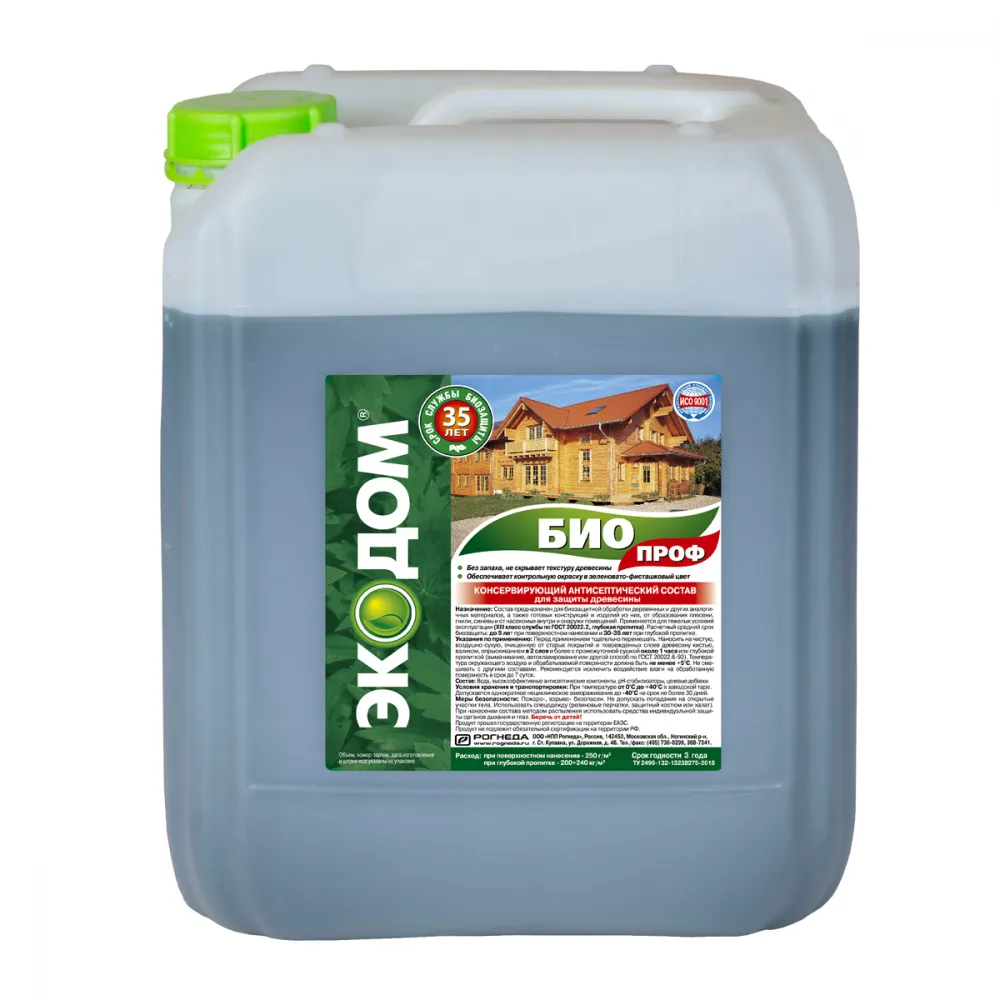 Экодом БиоПроф антисептик консервирующий для защиты древесины от образования плесени от гнили от синевы от насекомых, предназначен для защита древесины, находящейся в тяжелых условиях эксплуатации (I-ХIII классы условий службы по ГОСТ 20022.2) от биопоражений (гниения, плесени, грибка, синевы).