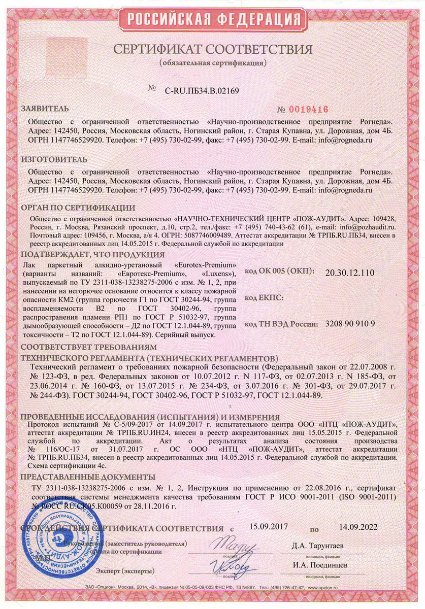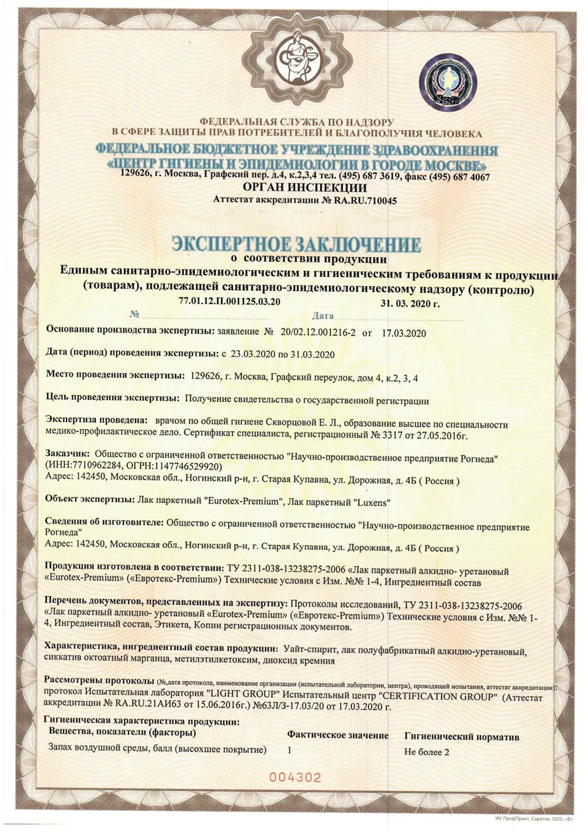 Eurotex Premium / Eвротекс Премиум лак паркетный алкидно-уретановый глянцевый