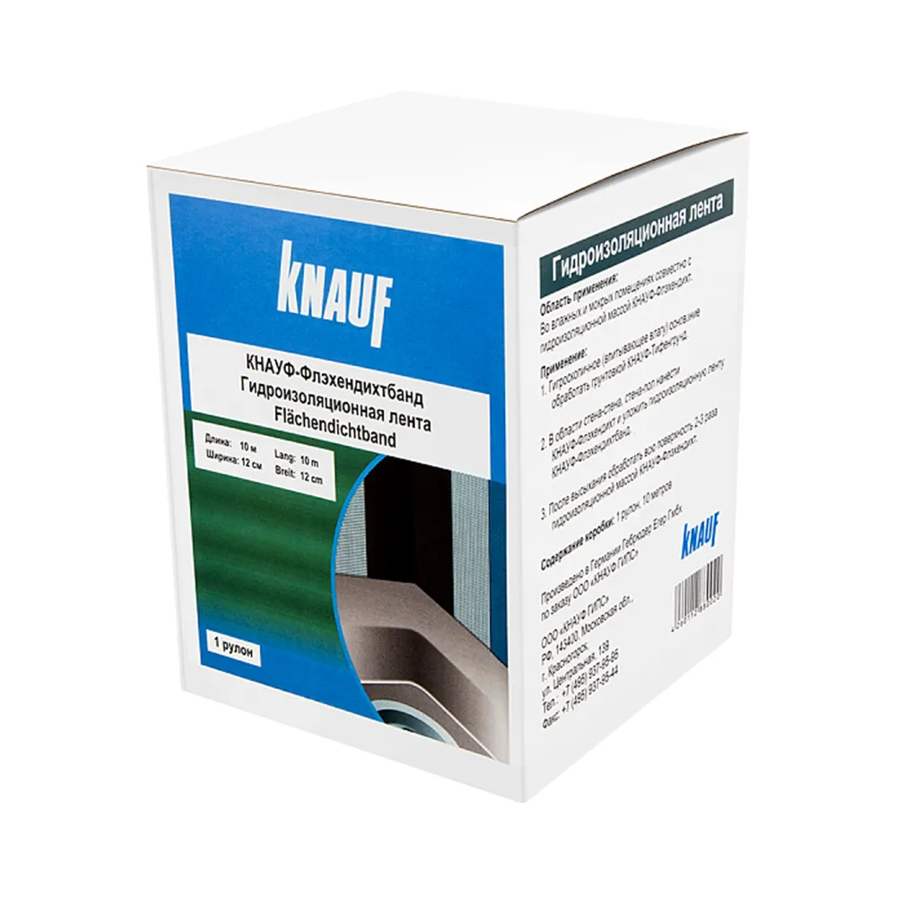 КНАУФ ФЛЭХЕНДИХТБАНД используется в сочетании с гидроизоляционными составами для обеспечения надёжного уплотнения изолируемых поверхностей в местах концентрации напряжений и возможных трещин.