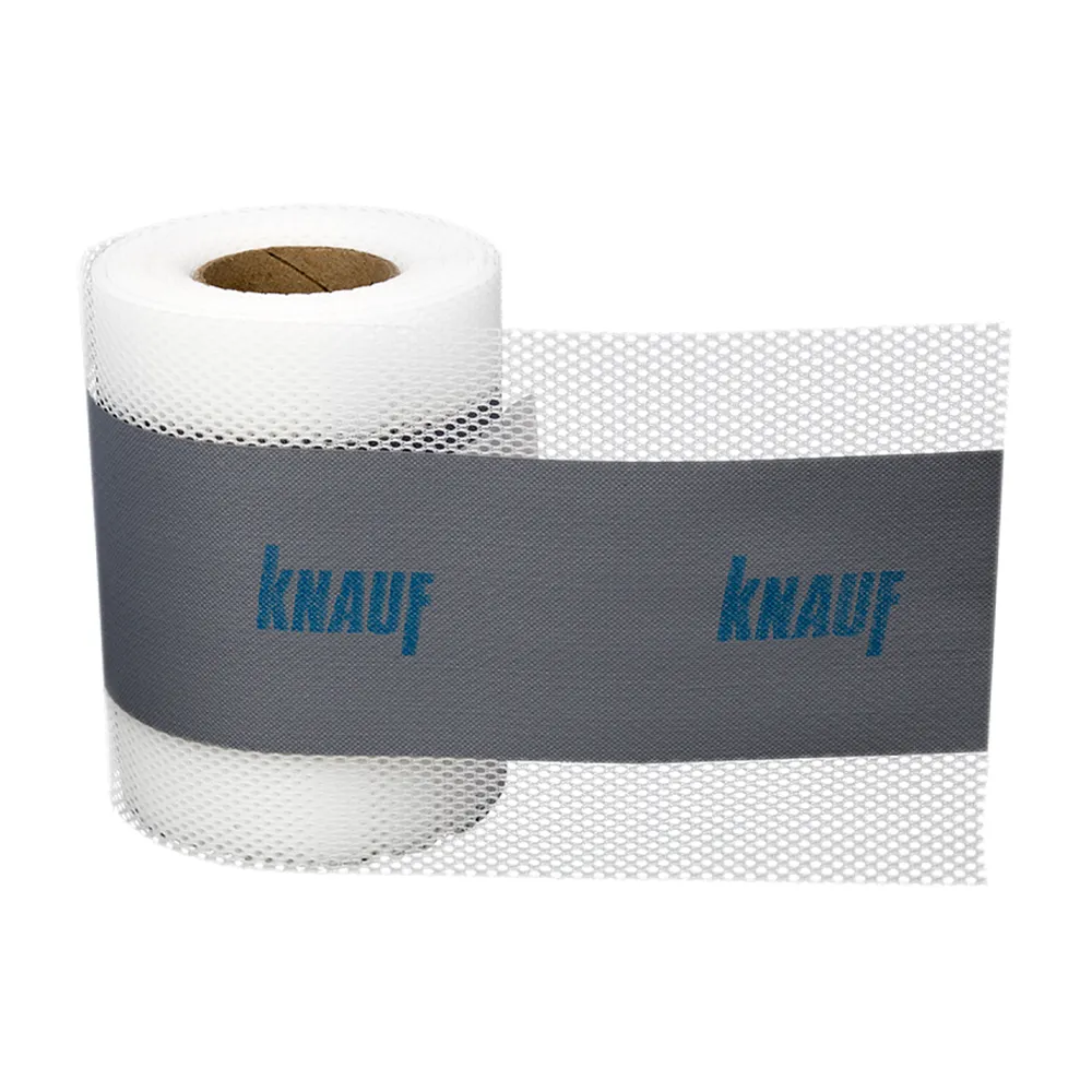 КНАУФ ФЛЭХЕНДИХТБАНД представляет собой тонкую, высокопрочную, эластичную полиэфирную сетчатую ленту, с нанесённой по продольной оси полосой водонепроницаемого, стойкого к старению эластомера.