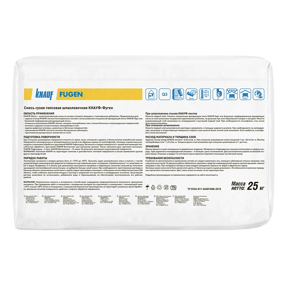 KNAUF FUGEN / КНАУФ ФУГЕН шпаклевка гипсовая универсальная для внутренних работ