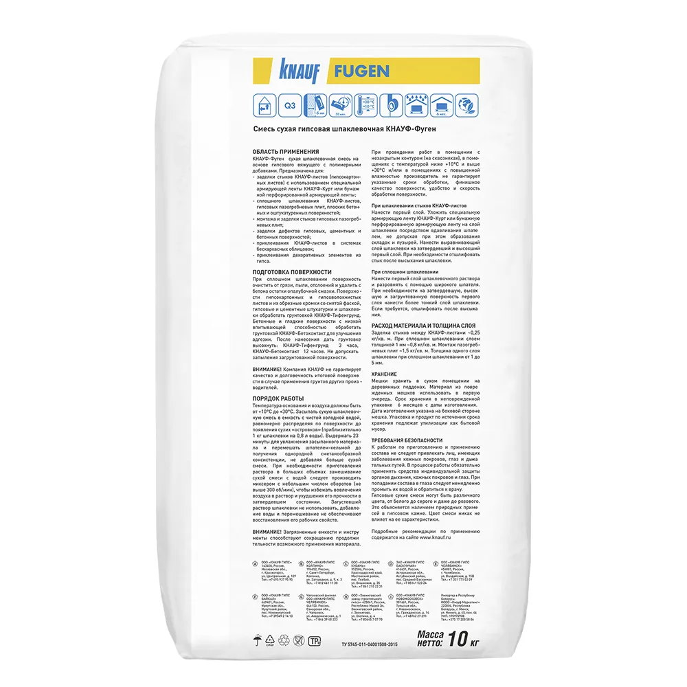 Применяется для заделки стыков и мест креплений КНАУФ-листов (гипсокартонных листов) и КНАУФ-суперлистов (гипсоволокнистых листов) с использованием специальной армирующей ленты КНАУФ-Курт или бумажной перфорированной армирующей ленты КНАУФ (категория качества поверхности Q1), для широкого шпаклевания стыков КНАУФ-листов, КНАУФ-суперлистов (категория качества поверхности Q2), для сплошного шпаклевания КНАУФ-листов, КНАУФ-суперлистов, гипсовых пазогребневых плит, ровных бетонных и оштукатуренных поверхностей (категория качества поверхности Q3), для монтажа и заделки стыков гипсовых пазогребневых плит, для заделки дефектов гипсовых, цементных и бетонных поверхностей.