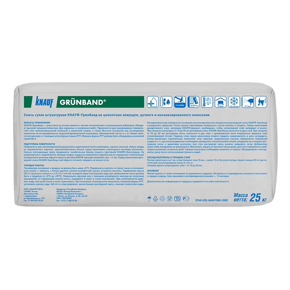 KNAUF GRUNBAND / КНАУФ ГРЮНБАНД штукатурка цементная фасадная трещиностойкая