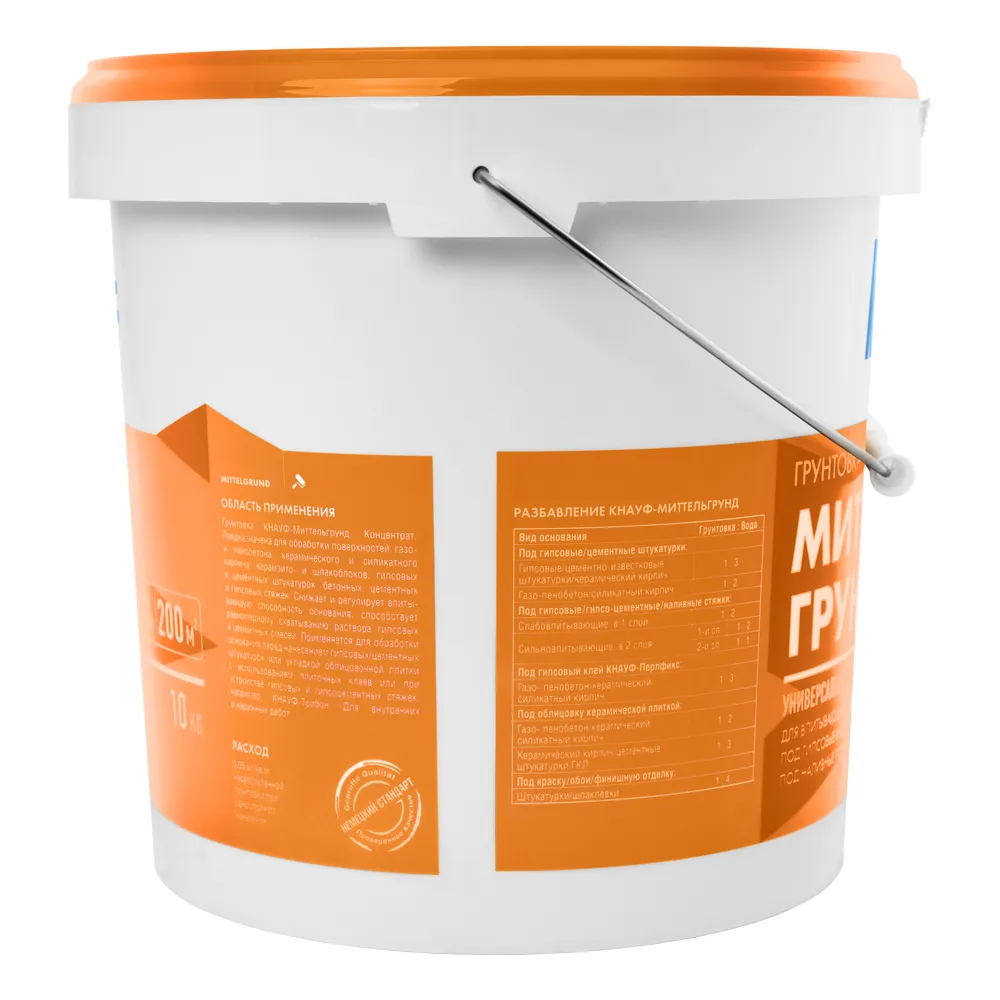 КНАУФ МИТТЕЛЬГРУНД предназначена для обработки поверхностей: газо- и пенобетона, керамического и силикатного кирпича, керамзито- и шлакоблоков, гипсовых и цементных штукатурок, щепоцементных плит и блоков, бетонной, цементной и гипсовой стяжек. Эффективно снижает и регулирует впитывающую способность основания, способствует равномерному схватыванию раствора гипсовых и цементных смесей