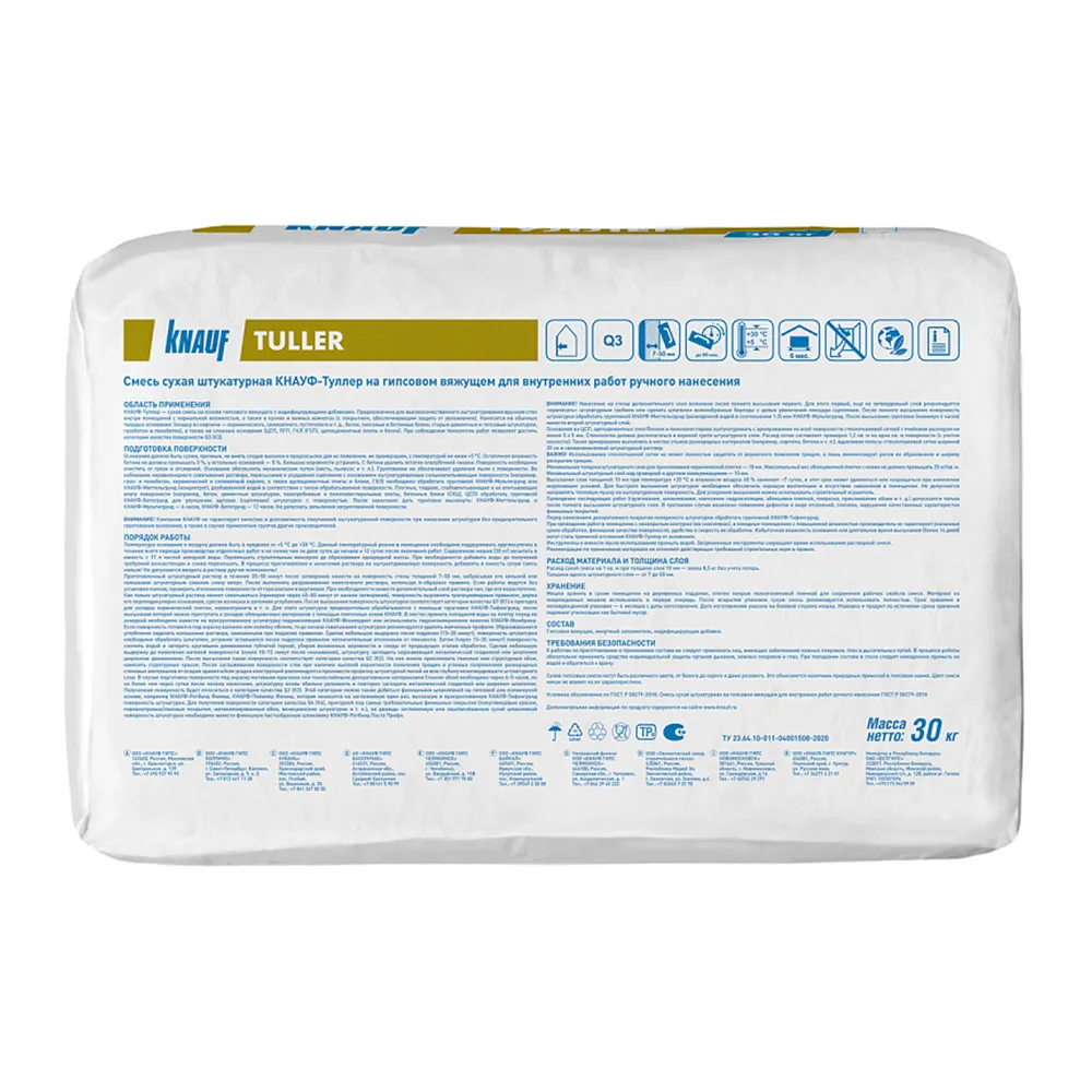 KNAUF TULLER / КНАУФ ТУЛЛЕР штукатурка гипсовая эластичная с увеличенными сроками схватывания