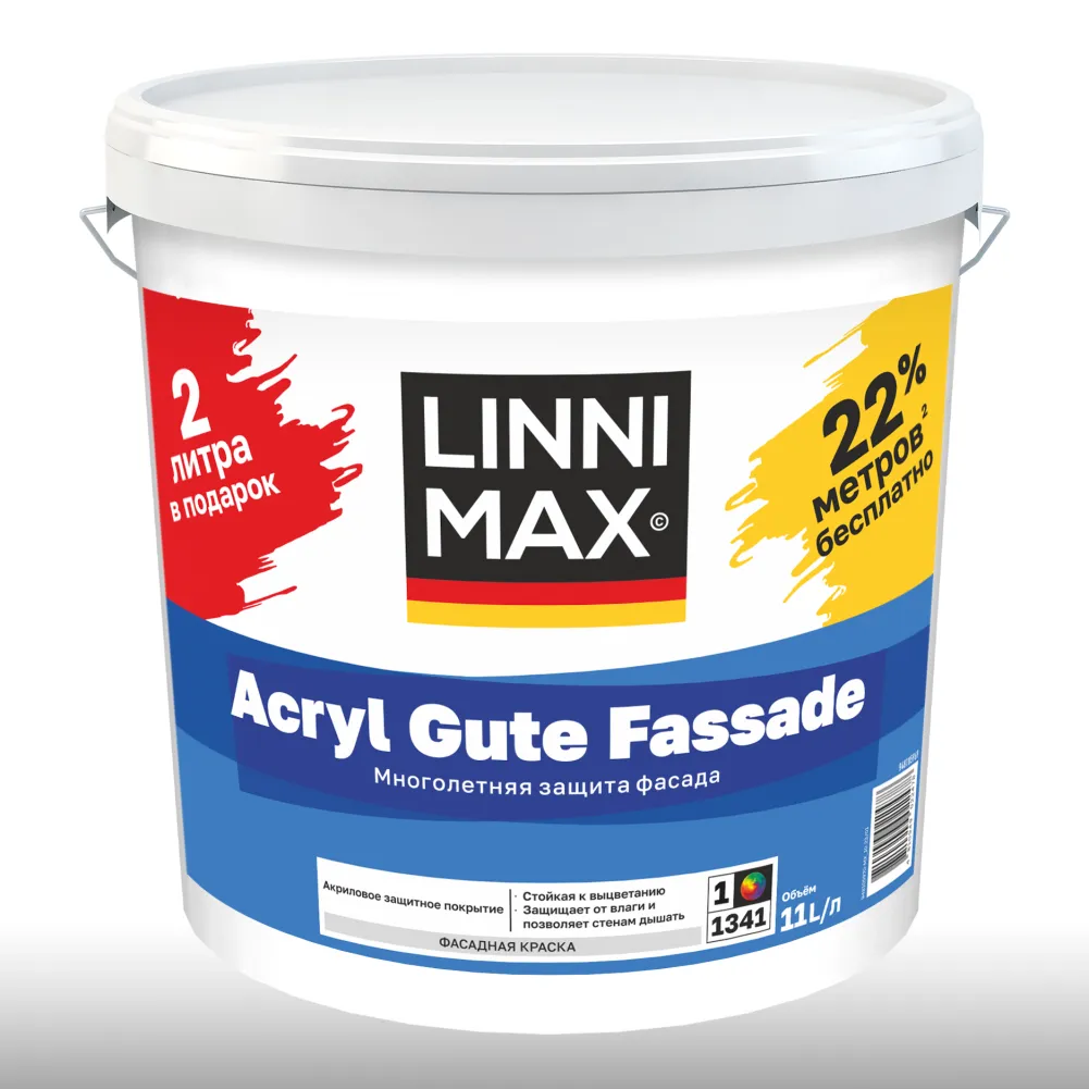 LINNIMAX ACRYL GUTE FASSADE / ЛИННИМАКС АКРИЛ ГУТЕ ФАССАДЕ краска фасадная, акриловая, матовая