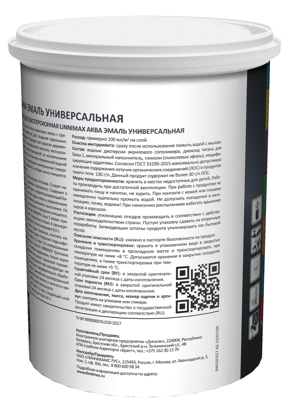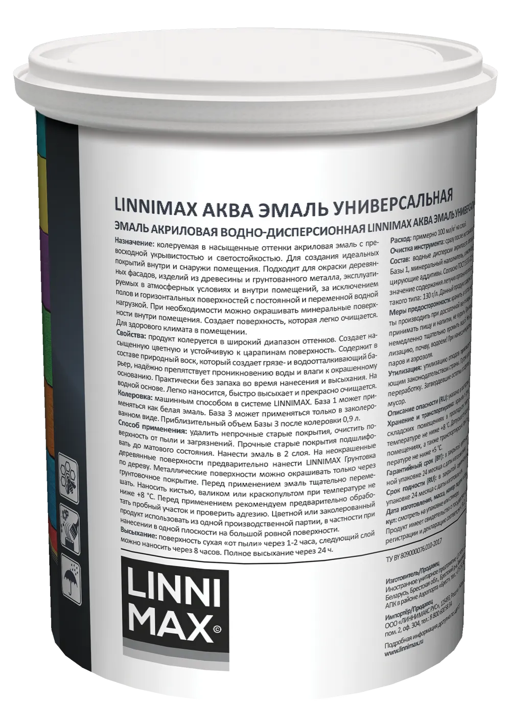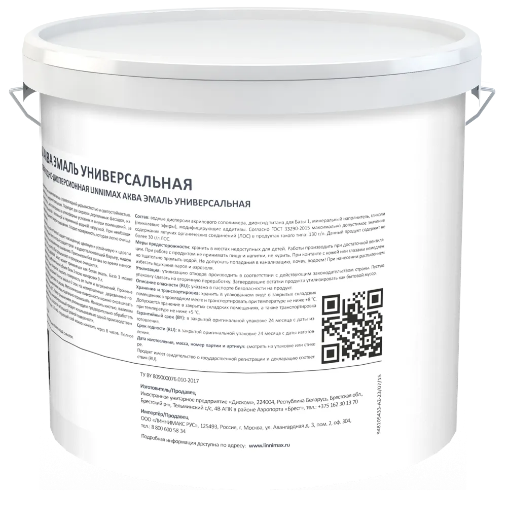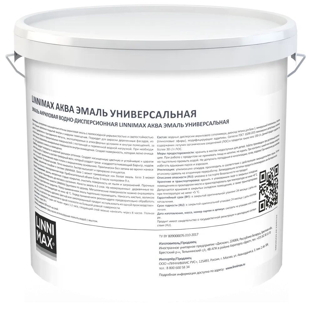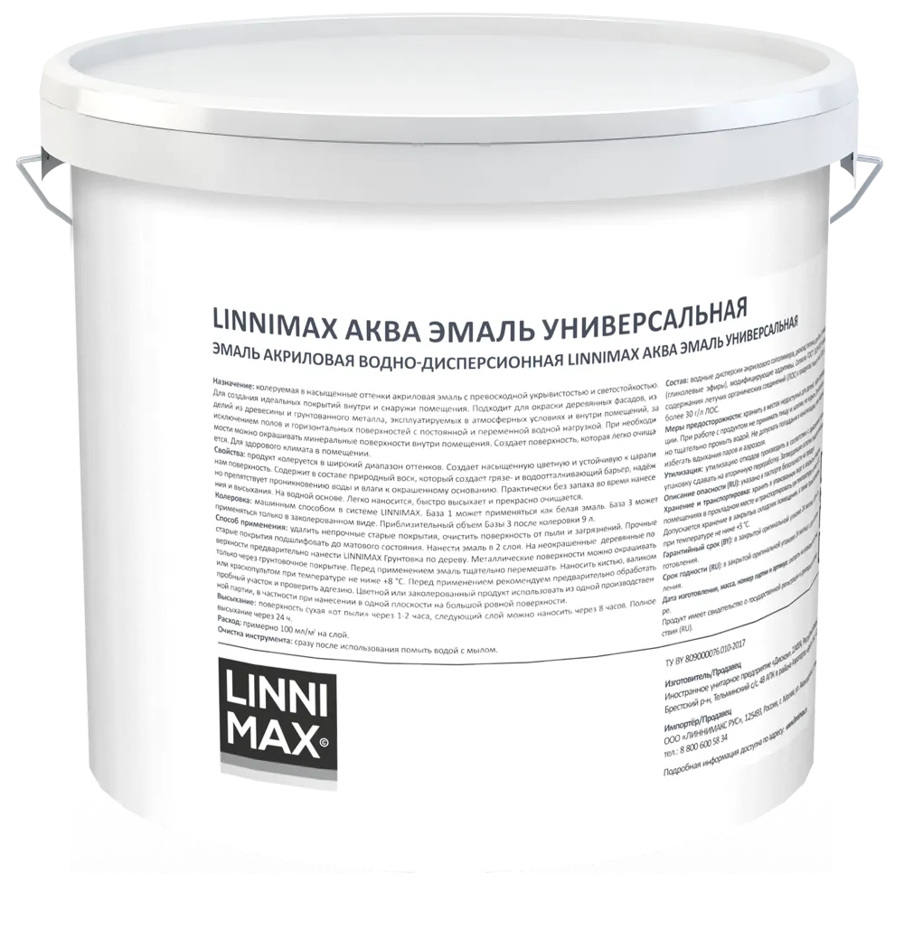 LINNIMAX / ЛИННИМАКС АКВА эмаль акриловая универсальная атмосферостойкая для вн/нар шелк-матовая