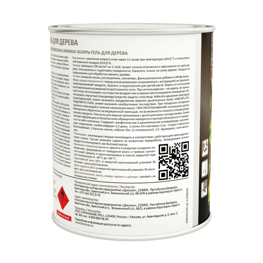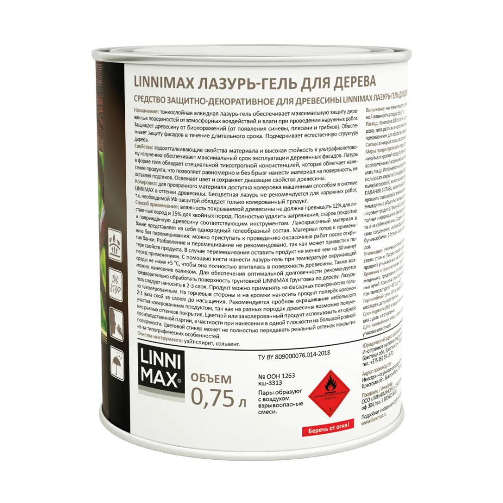 LINNIMAX / ЛИННИМАКС лазурь-гель для дерева алкидная лессирующая шелковисто-матовая