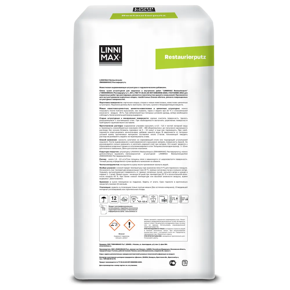 LINNIMAX RESTAURIERPUTZ / ЛИННИМАКС РЕСТАВРИРПУТЦ штукатурка реставрационная известковая