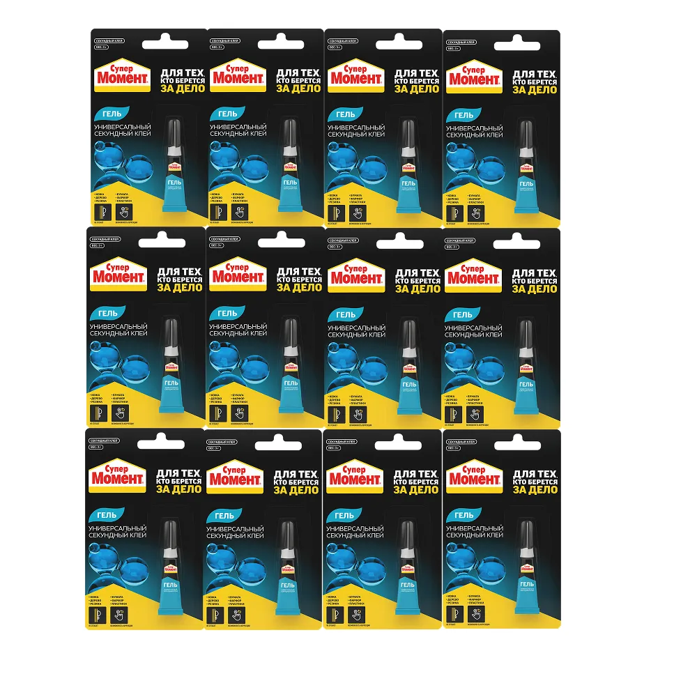 МОМЕНТ СУПЕР МОМЕНТ ГЕЛЬ секундный клей гелеобразный, туба на мультикарте 12шт.