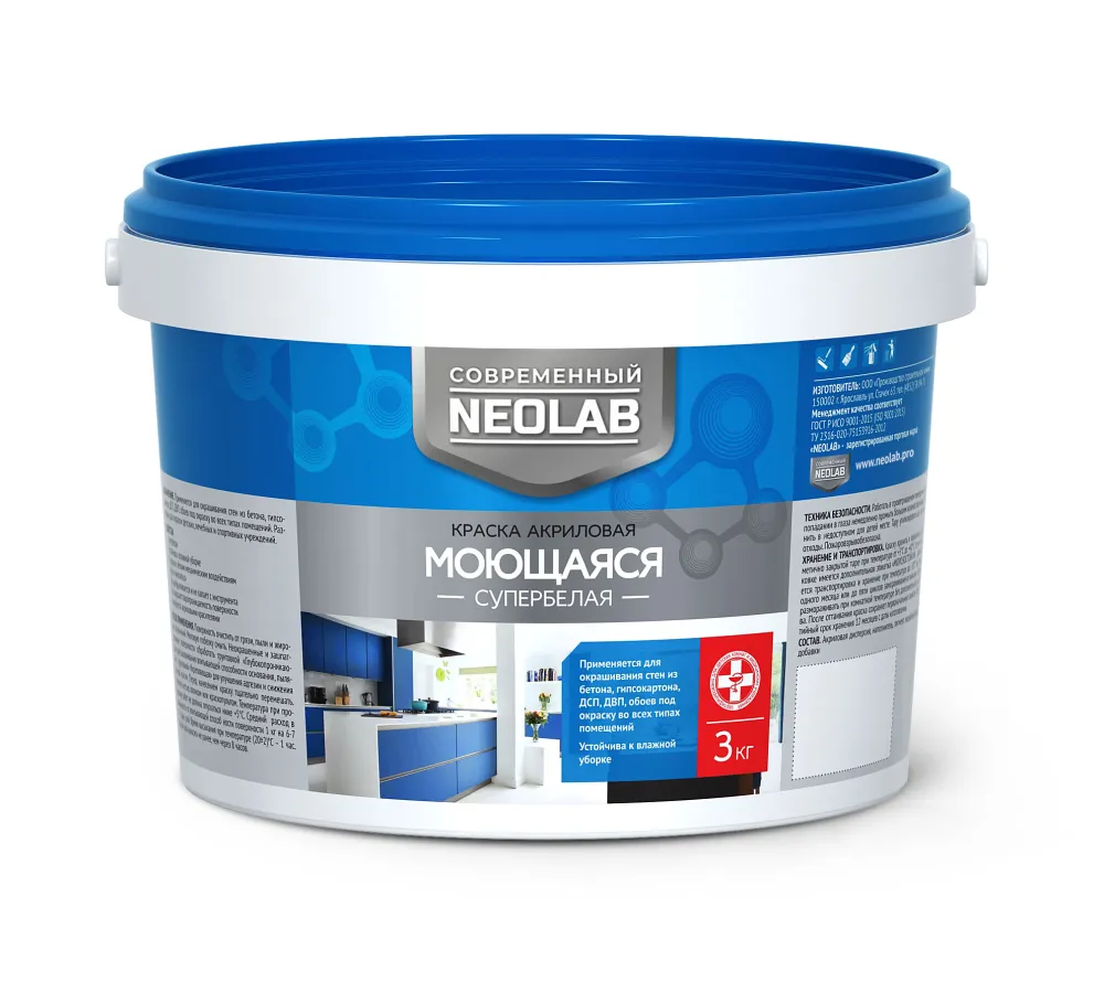 NEOLAB МОЮЩАЯСЯ / НЕОЛАБ МОЮЩАЯСЯ краска акриловая супербелая