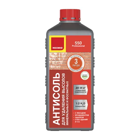 NEOMID 550 предназначен для удаления минеральных высолов различного происхождения и состава с кирпича, природного и искусственного камня, бетона и т.п.
