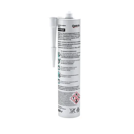 Применяйте Quelyd Мастификс «CRYSTAL» с помощью пистолета для герметиков. Вставьте упаковку в пистолет, далее вскройте упаковку и проткните мембрану, установите носик и приступайте к нанесению.