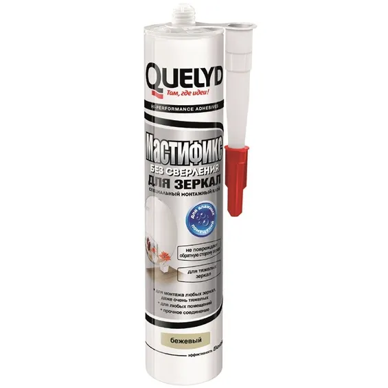 "Quelyd Mastifix" для зеркал - универсальный монтажный неопреновый клей. Предназначен для крепления всевозможных материалов внутри и снаружи помещений.
