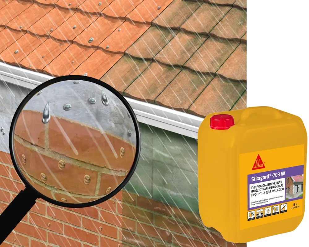 Sikagard 703 W применяется для придания водоотталкивающих свойств фасадам и защиты зданий от атмосферных осадков.