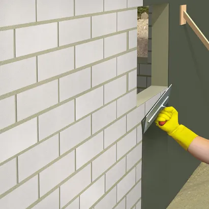 Наносите готовый раствор на подготовленную и увлажнённую поверхность при помощи зубчатой кельмы (шпателя)с высотой зуба 3х3 мм. После того, как первый слой отвердеет нанесите второй слой гладкой кельмой (шпателем).