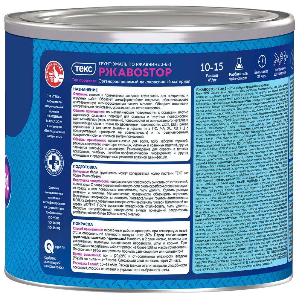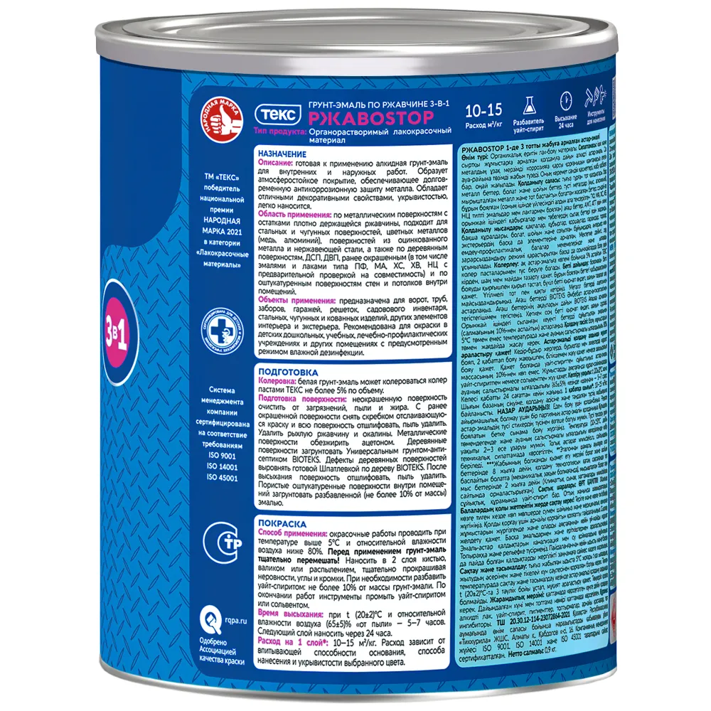 Текс Ржавостоп грунт эмаль 3 в 1 по ржавчине
