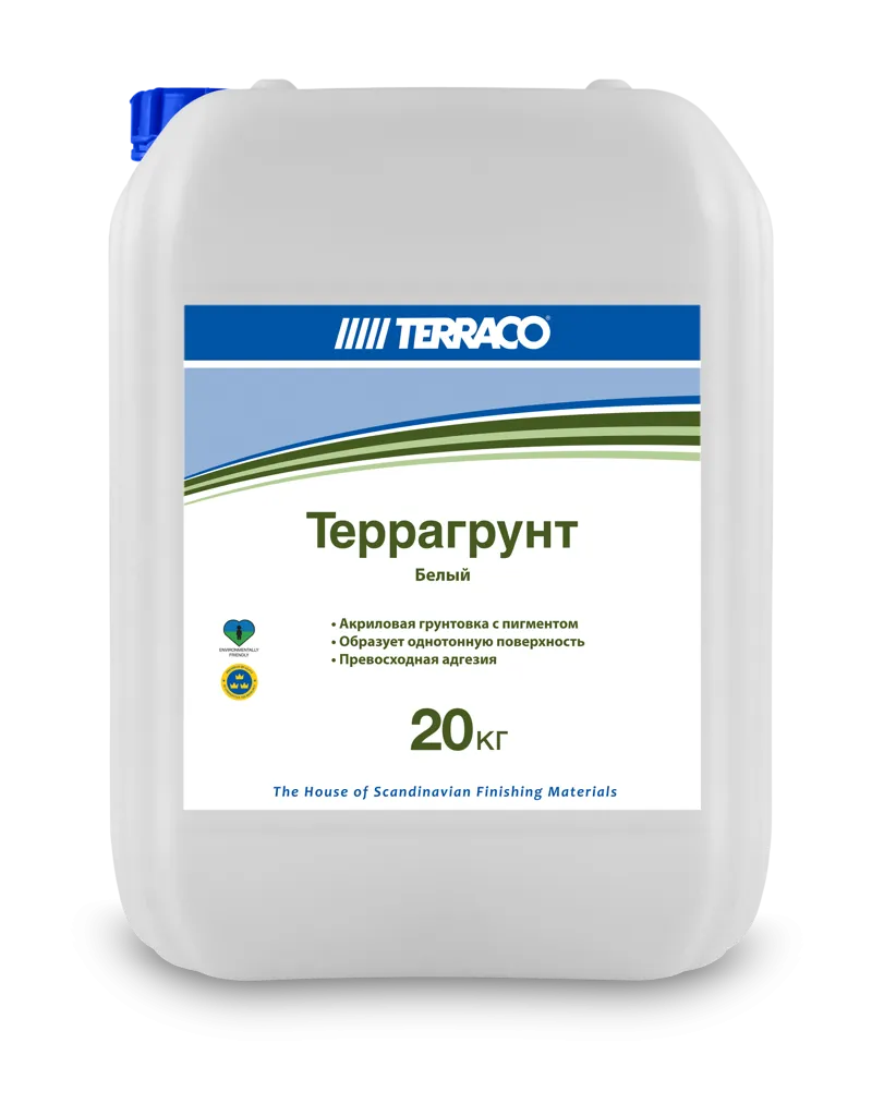 \"Terraco Террагрунт\" глубокопроникающий универсальный грунт для фасадных и внутренних поверхностей. Может использоваться на всех основах из бетона, пенобетона, цемента, гипсокартона, древесины, а также покрытых штукатуркой. Расход: 0,1 – 0,3 кг/м2.