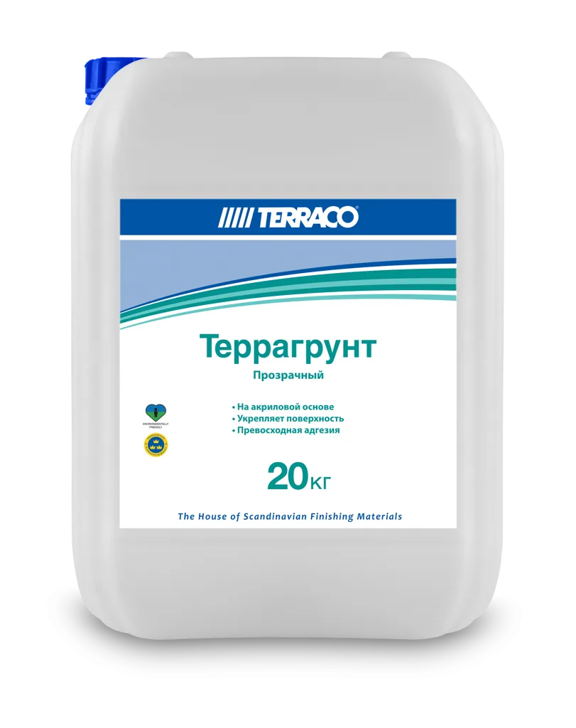 ТЕРРАГРУНТ прозрачный является грунтовкой на акриловой основе, которая глубоко проникает в основания из цементосодержащих материалов и штукатурки. Она связывает основание с поверхностью, позволяя получить твердую основу для нанесения декоративных финишных покрытий, таких как текстурные покрытия, краски и тонкослойные штукатурки.